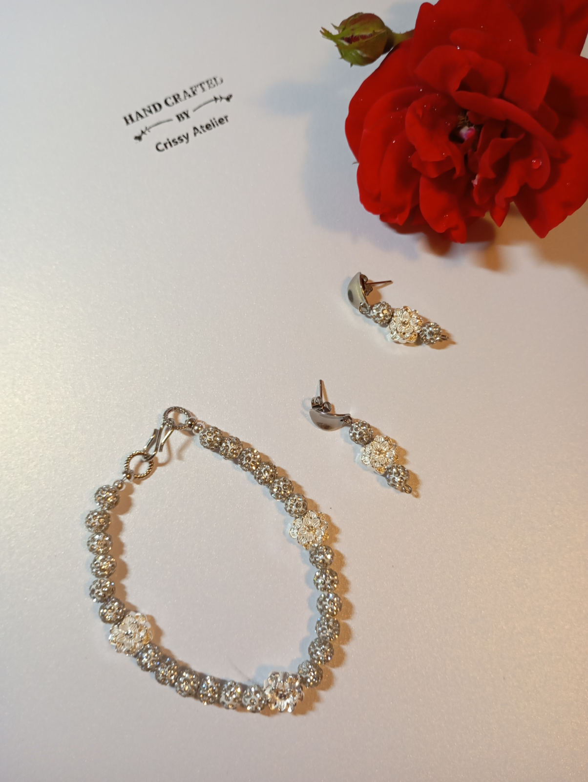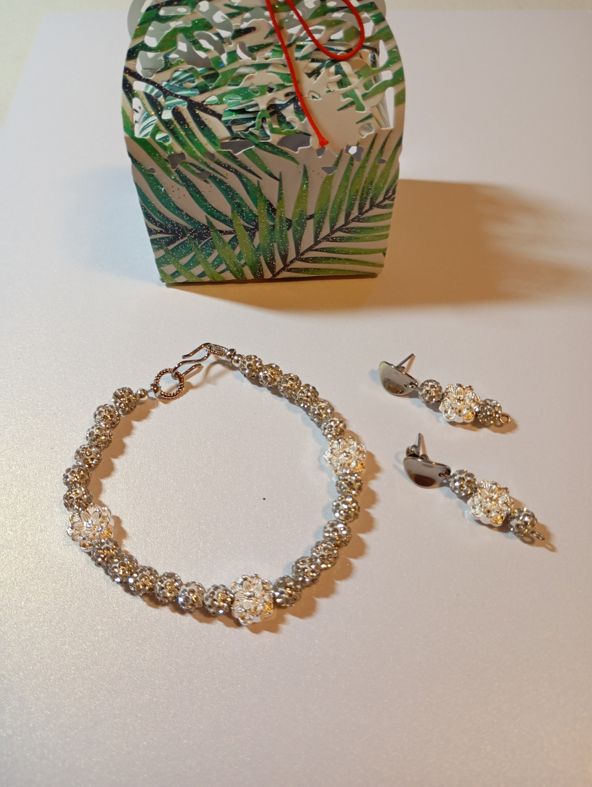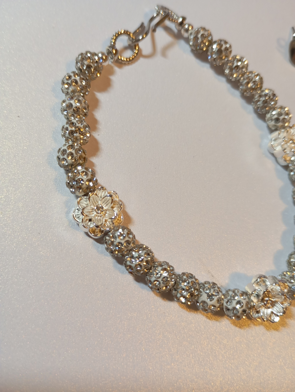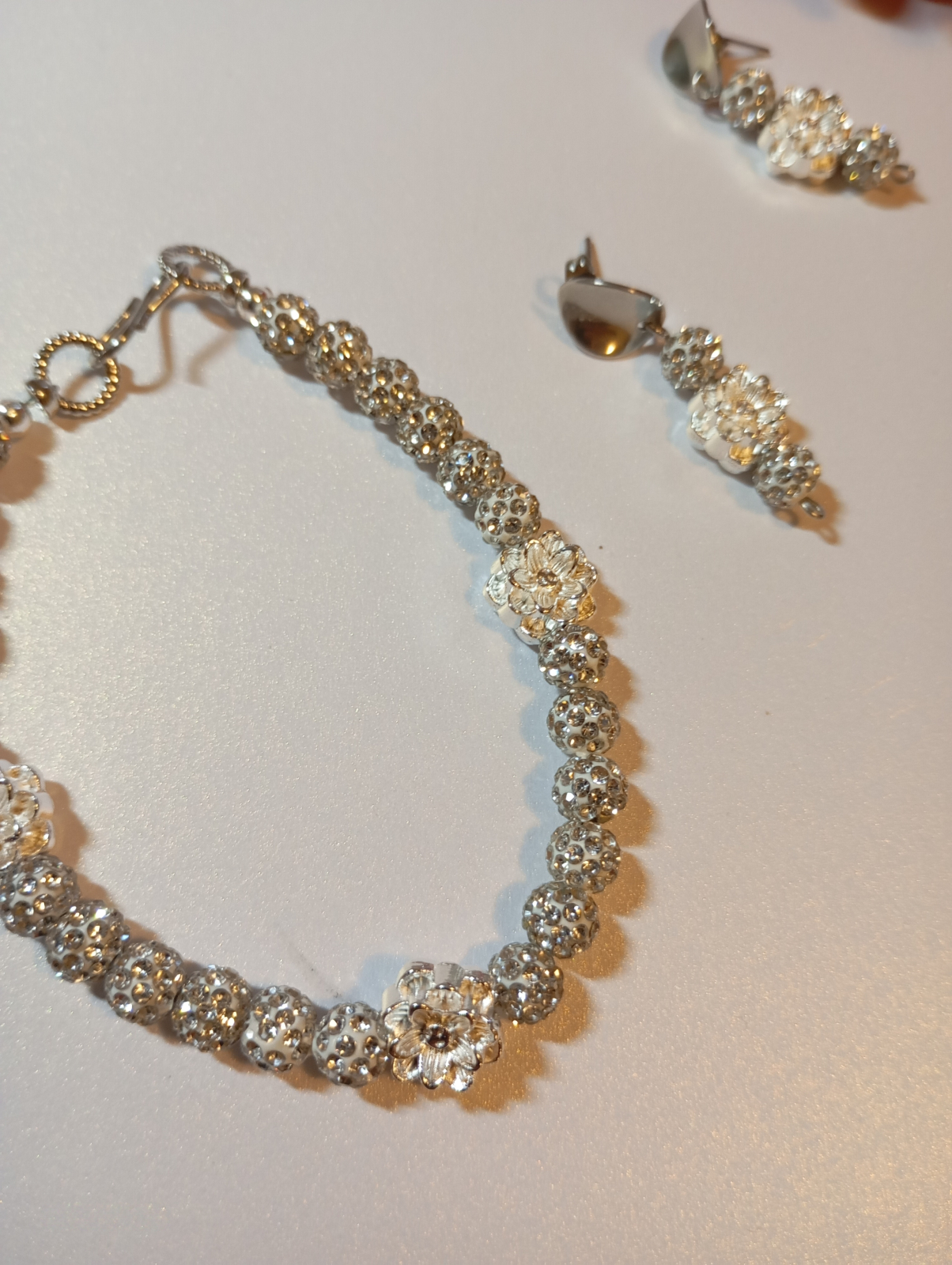 Bijuterii pentru club, petrecere, stralucitoare, din margele cu rhinestone cristal, 6 mm si flori din otel inoxidabil, antialergice, nu oxideaza.