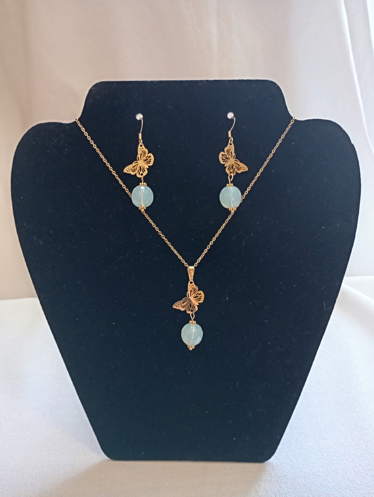 CrissyAtelier Set Opal si fluturas placat cu aur 18K
