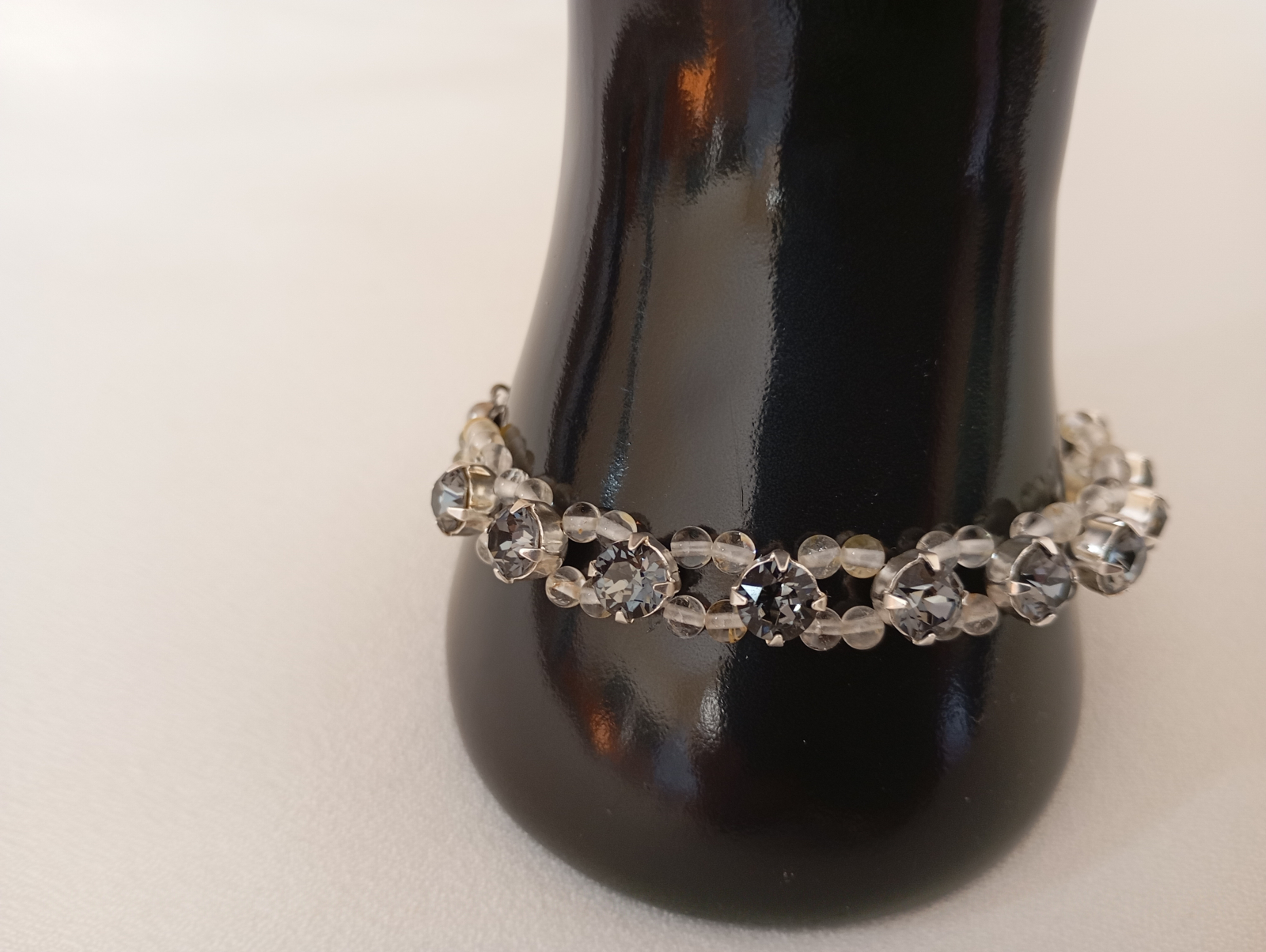 Bratara eleganta, de ocazie, realizata manual cu cristale Swarovski chaton montee culoare black diamond 6 mm si margele topaz alb transparent 4 mm.