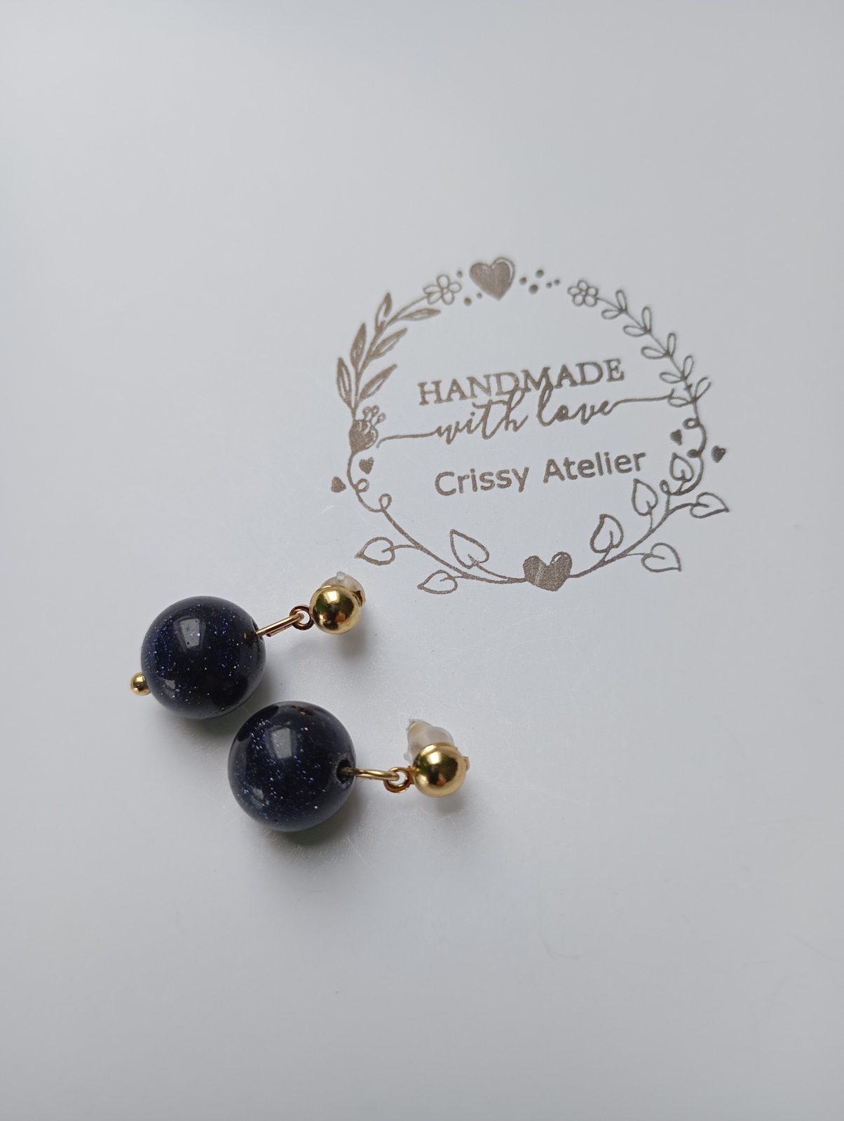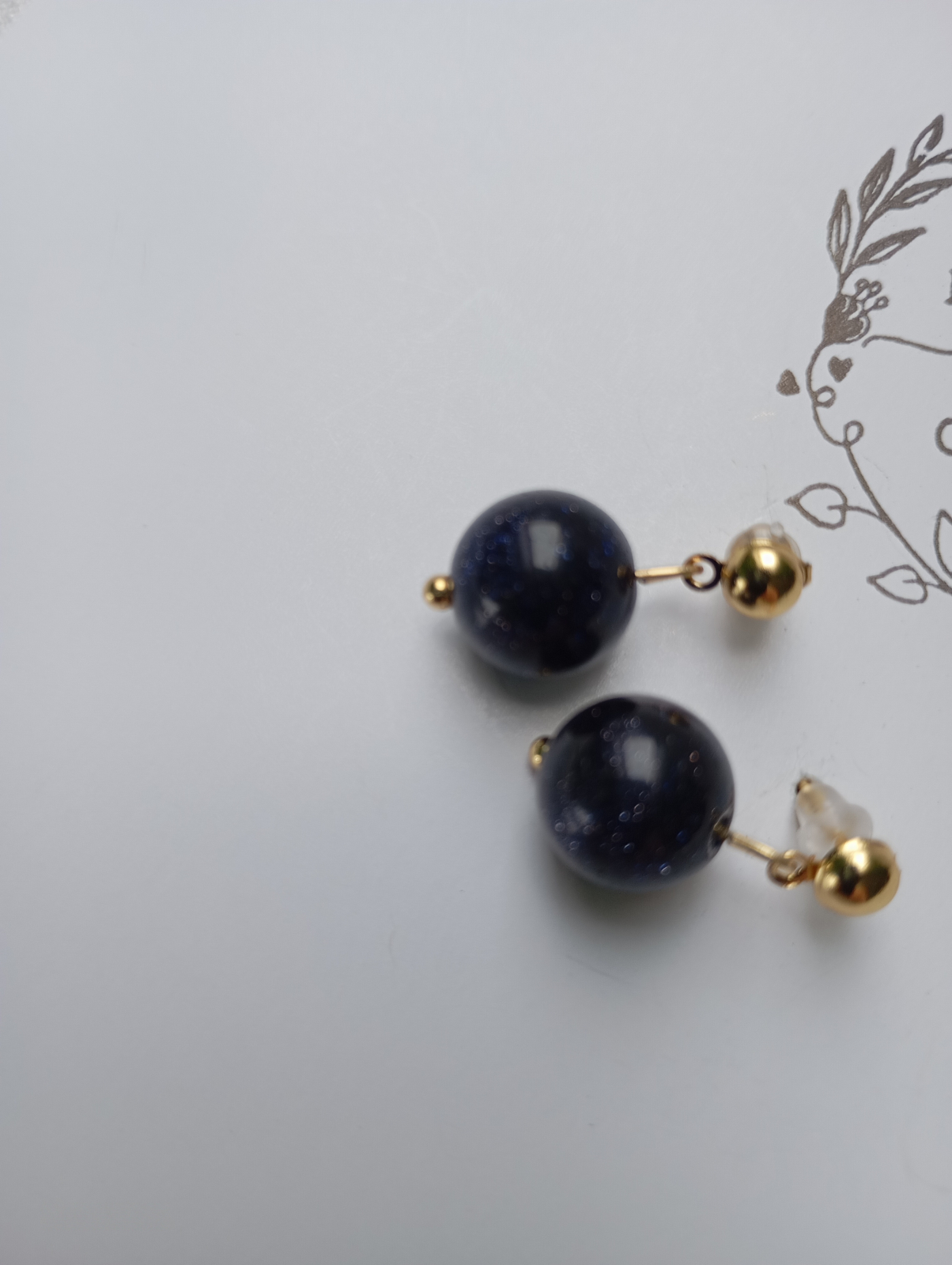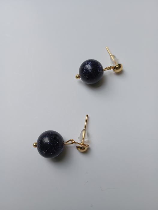 Cercei scurti, pe lobul urechii, cu pietre semipretioase Piatra Soarelui albastre cer instelat 12mm