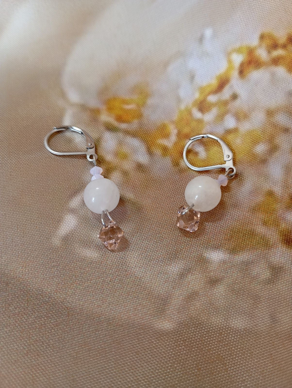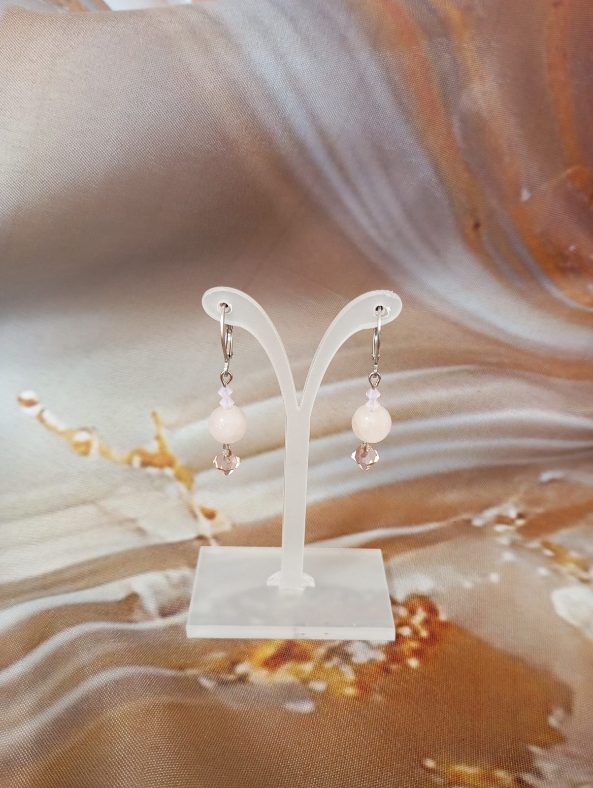 Cercei handmade Cuart roz 10 mm si Swarovski 6 mm