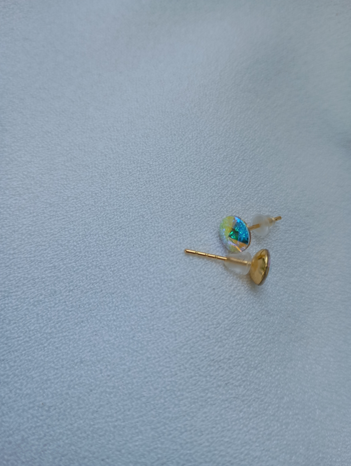 Cercei, simpli, delicati, casual, din otel inoxidabil, antialergic, auriu si cristal rivoli Swarovski Crystal Aurore Boreale.