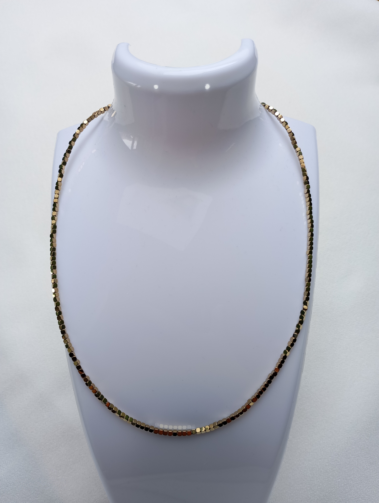 Colier cu pietre Hematit, nemagnetic, auriu, 22, patrate cu colturi rotunjite.