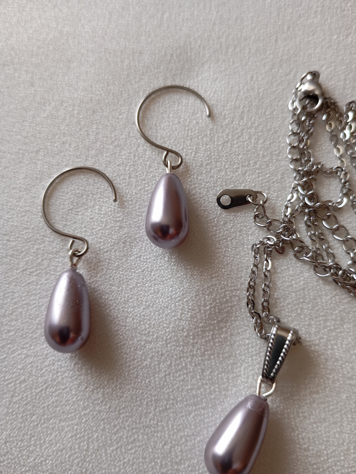 Set biuterii cu Perle Swarovski cu accesoriii din otel inoxidabil.