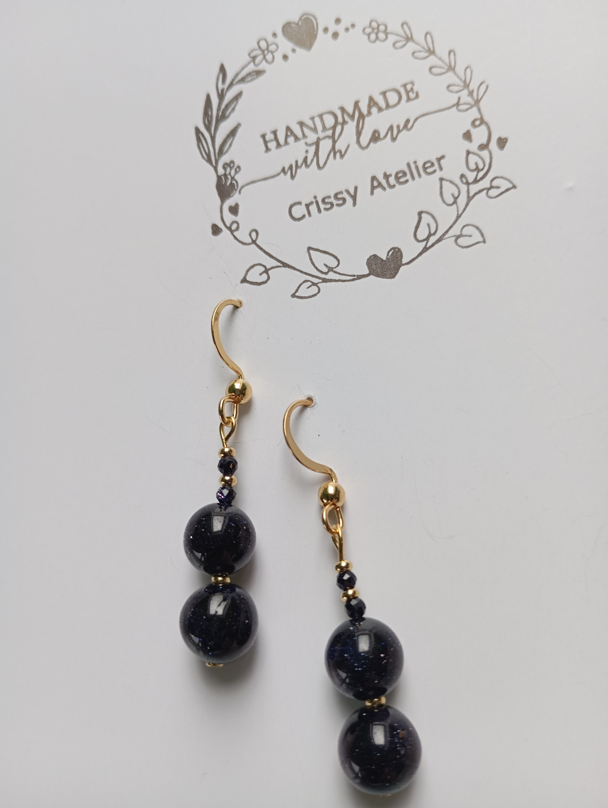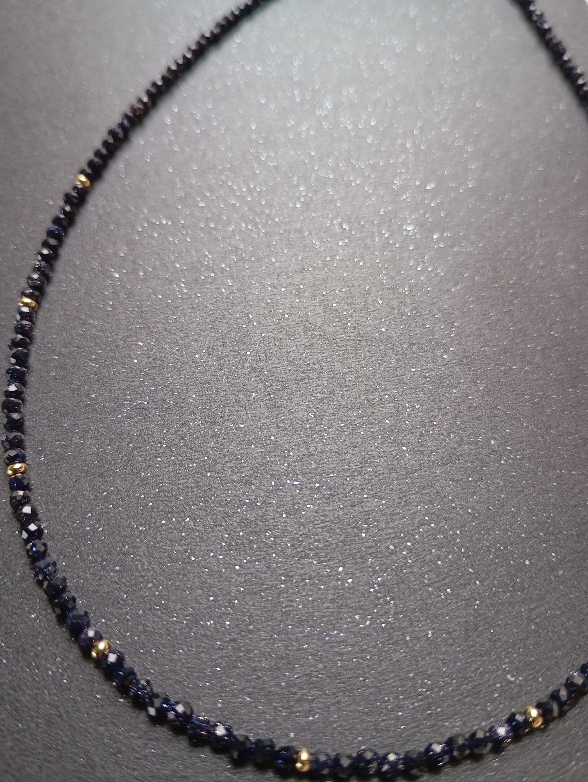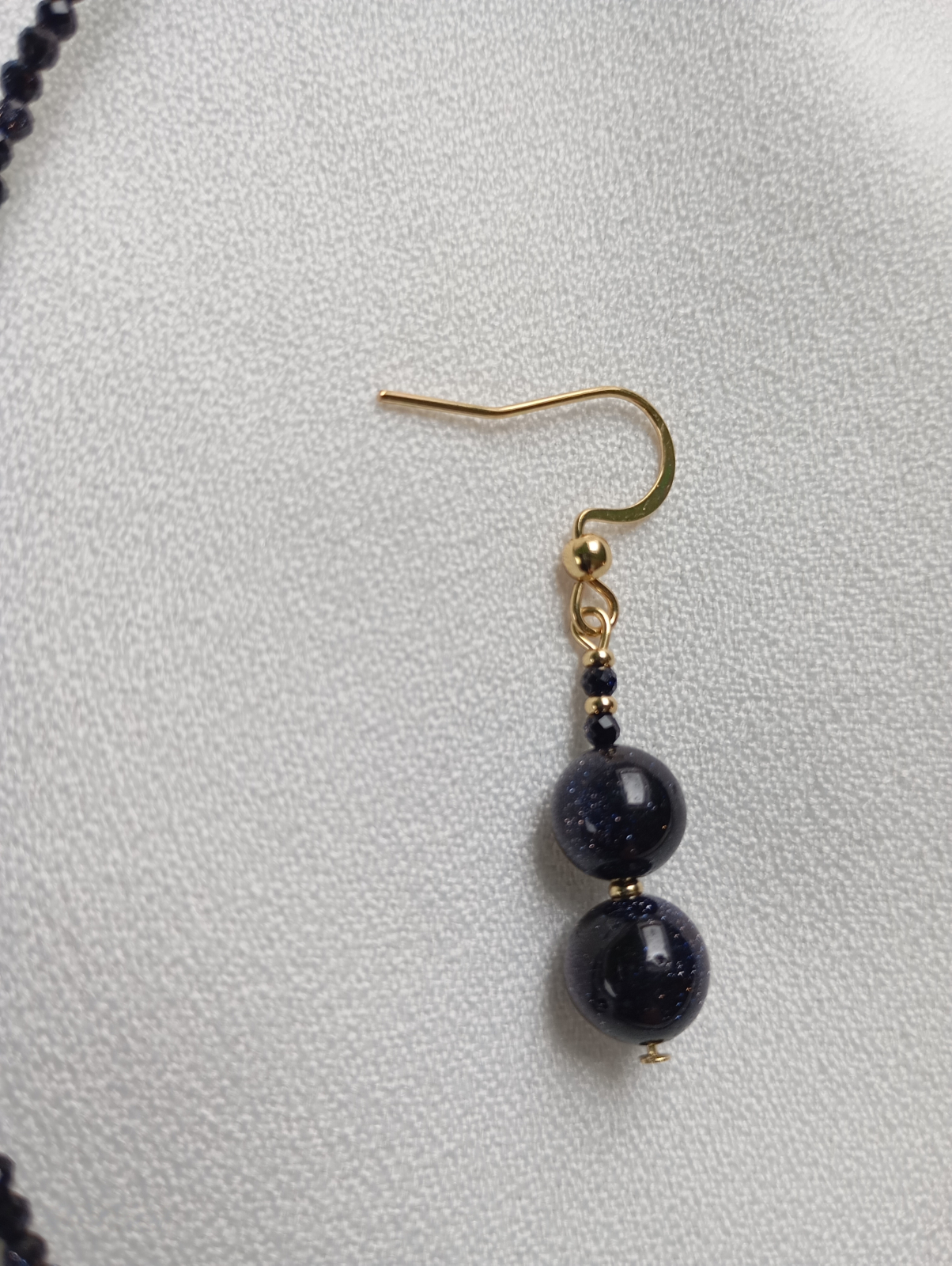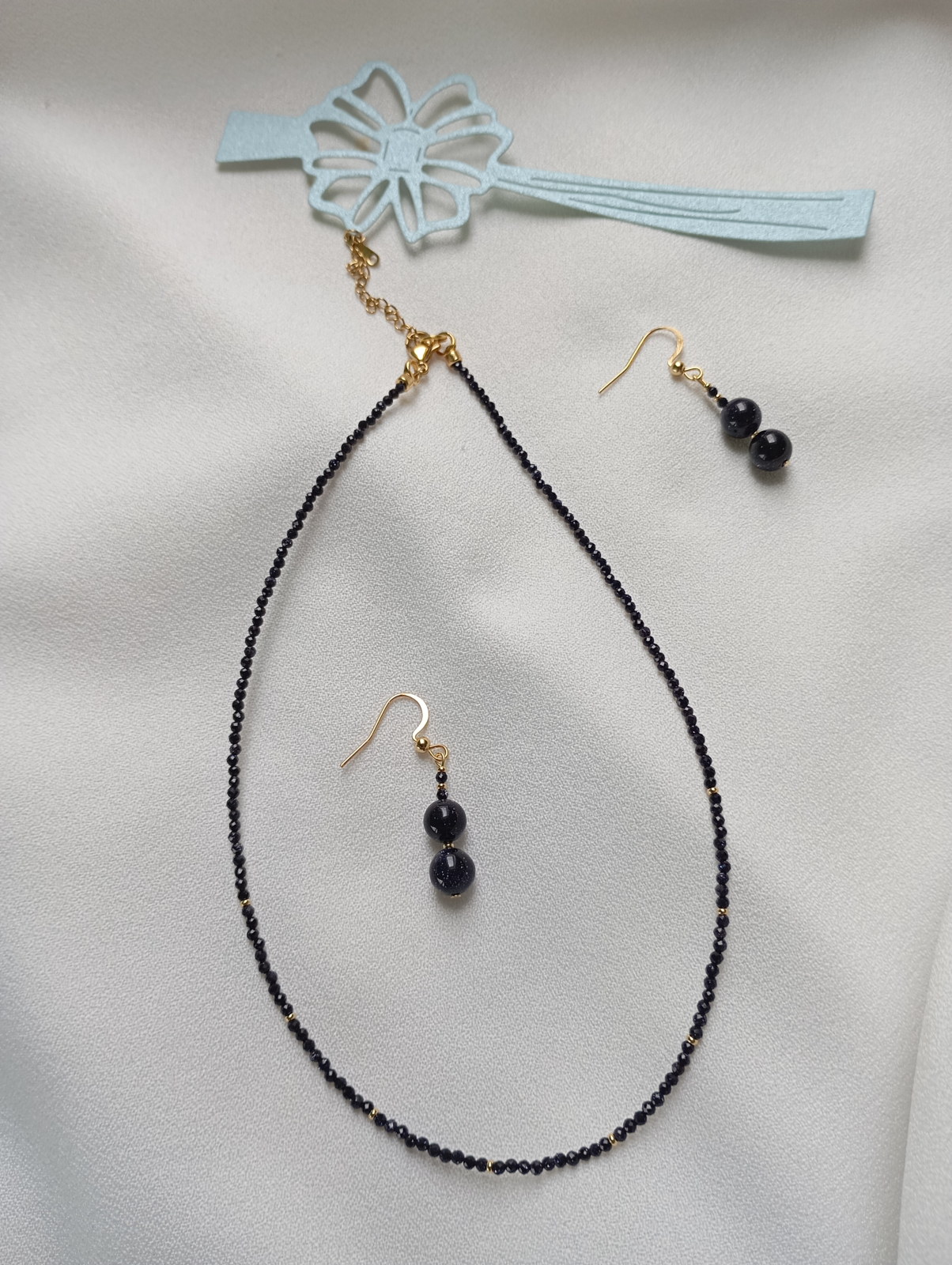 Set de bijuterii, colier si cercei cu Piatra Soarelui albastru cer instelat, dimebsiuni crescendo 2-8 mm.