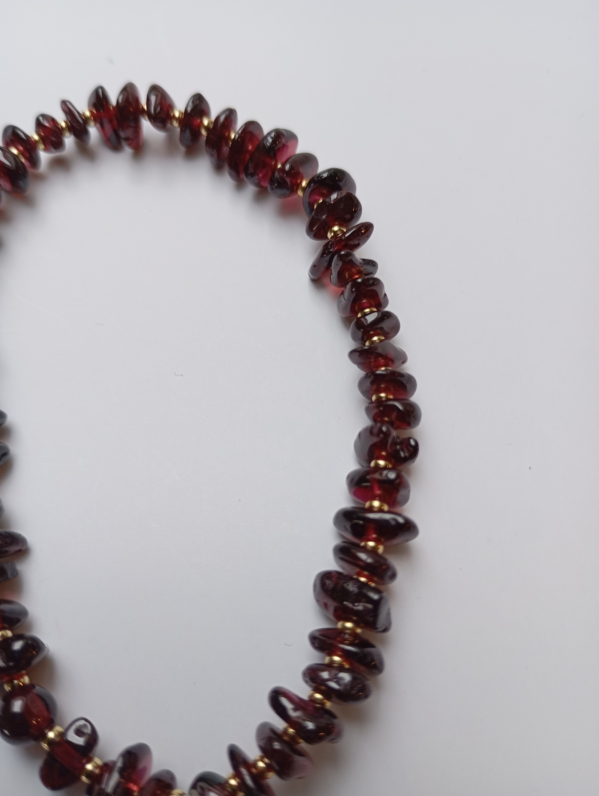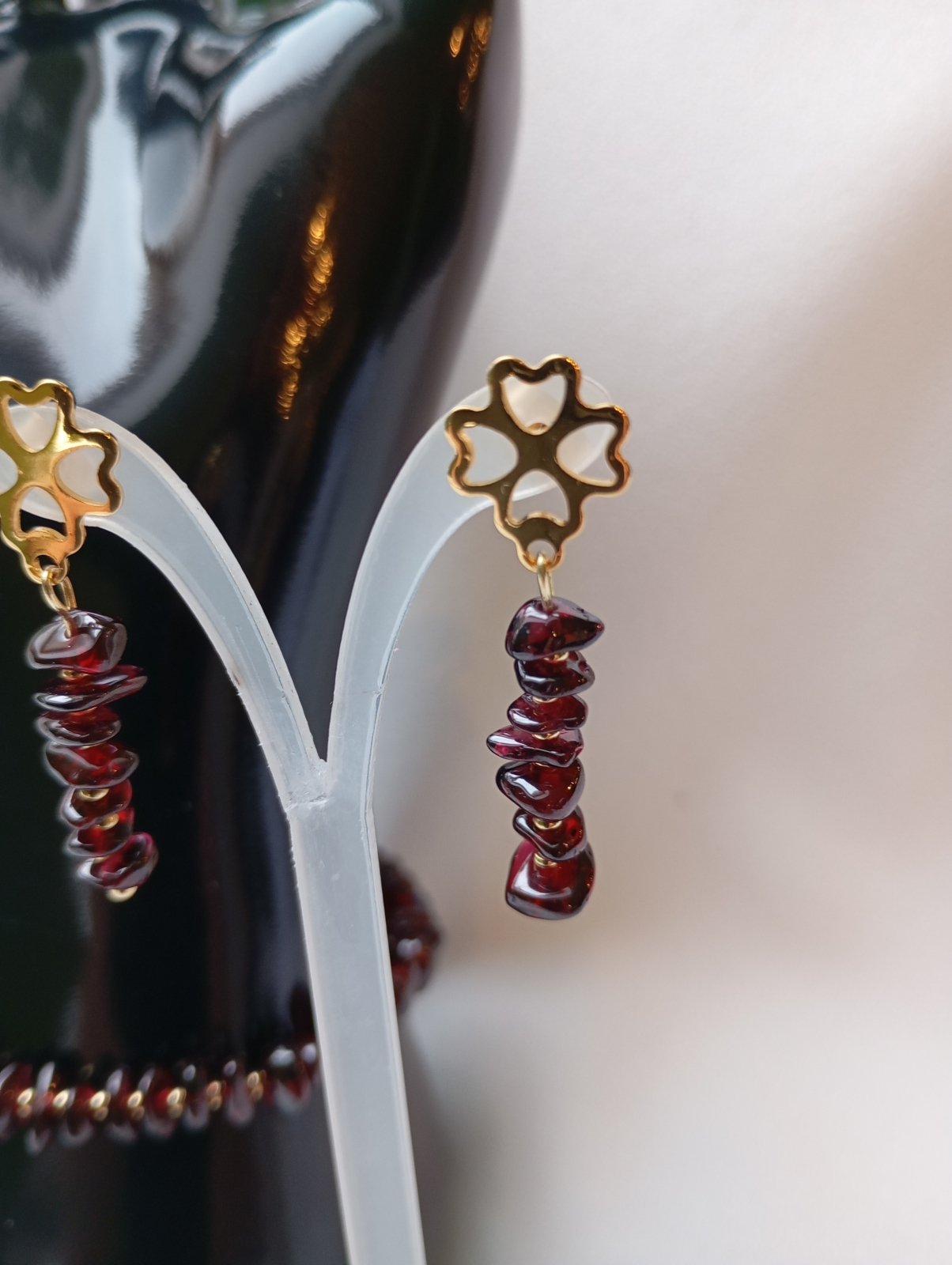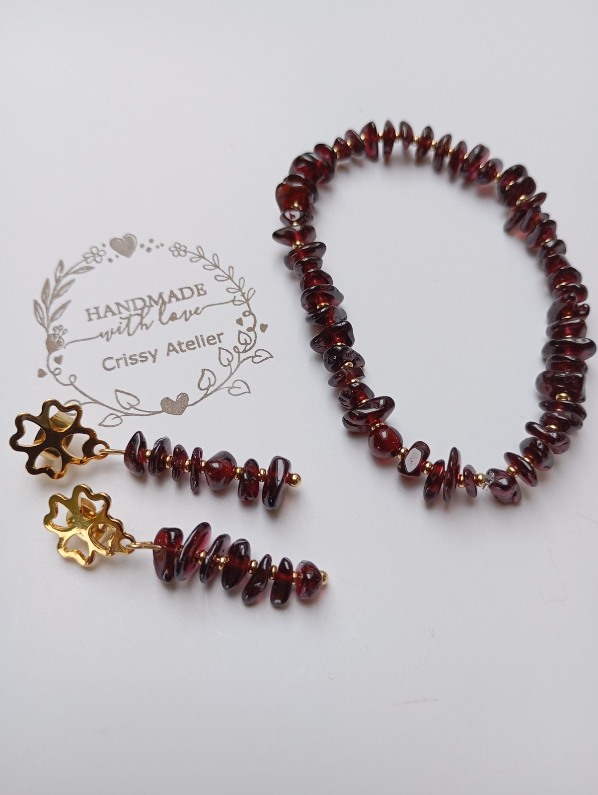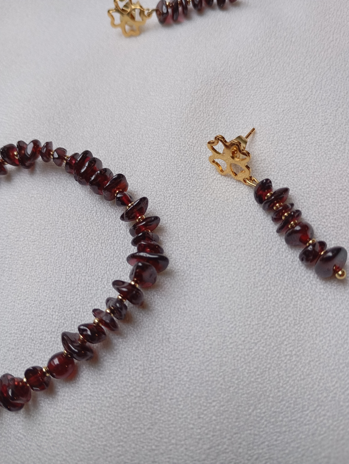 Set bijuterii cu chipsuri Granat 3-7 mm si matgelute 1 mm plavate cu aur 18K.